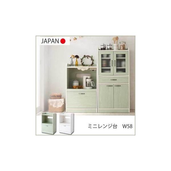Amazon ミニ食器棚 レンジ台 幅58cm 国産 完成品 キッチン 台所 収納 ホワイト 白 可愛い かわいい グリーン キャビネットs 食器棚 オンライン通販